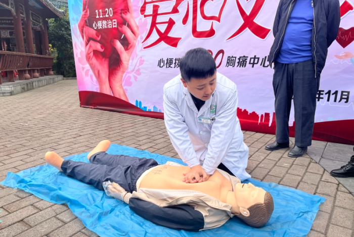 活动中,得知消息的市民早早来到现场排队候诊,就诊群众络绎不绝。医护人员有的为市民提供咨询服务、解答疑惑,有的向市民发放宣传手册、宣讲健康知识,有的为市民测血糖血压,有的向市民普及急性心梗的规范化救治流程。通过手把手教学,耐心解答市民提出的问题,一遍遍示范着心肺复苏的操作标准,加深公众对心梗救治知识的了解。