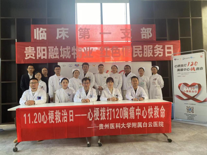 为了进一步提高人民群众对心梗严重性与防治重要性的认识,11月20日,贵州医科大学附属白云医院胸痛中心牵头,联合临床第一党支部组织医护专家走进中天金融城国际社区(东区)、云城苑,开展主题为“心梗拨打120,胸痛中心快救命”——中国心梗救治日义诊宣教活动。为在场群众进行心血管、呼吸系统等慢性疾病咨询诊疗,科普宣教,发放健康知识资料,血压测量、血糖检测。同时,开展心肺复苏的实操演示,指导群众实际操作,规范施救行为,获得在场群众的一致认可。