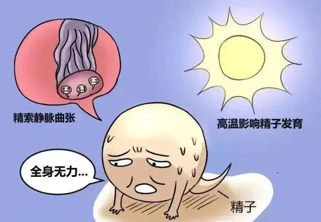 患精索静脉曲张可以引起局部不适,表现为阴囊处的坠胀和牵拉痛,站立和活动时显著,卧床可减轻。还可对患者的心理情绪产生影响,部分患者因此产生焦虑伴发神经衰弱,引起情绪反常、乏力、失眠等等。有上述不适者仅占精索静脉曲张患者的很少部分,大多数患者并没有任何症状。精索静脉曲张还可能产生更为严重的危害,但往往因无显性症状而被忽视,即对男性生育的影响。一是由于静脉血的瘀滞,导致睾丸的温度升高,干扰了生精能力。二是静脉血的瘀滞影响了睾丸代谢,使局部缺氧,代谢废物淤积,毒害睾丸的生精细胞和精子,以及抑制雄性激素的产生。综合影响产生的后果,使患者精子数量减低,活动能力低下,畸形精子增加,因此可能导致不育。