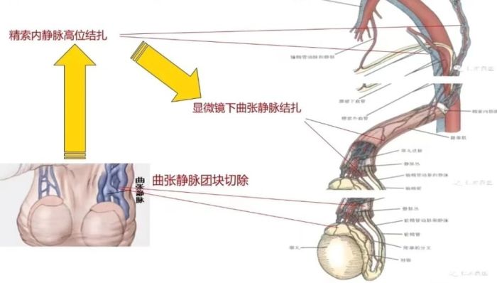 精索静脉曲张的治疗主要分为保守治疗和手术治疗。现阶段,显微精索静脉曲张手术已逐渐成为最安全的手术方式。是借住显微镜可以清楚的看到淋巴管、动脉、静脉、输精管,从而精准结扎精索静脉的手术。手术适应症:1、精索静脉曲张伴不育者;2、重度精索静脉曲张患者;3、双侧精索静脉曲张患者;4、轻、中度精索静脉曲张伴精液质量异常或症状明显(如坠胀、疼痛)或睾丸缩小、质地变软着。5、青少年患者只限于严重精索静脉曲张、症状明显(持续疼痛)和同侧睾丸发育迟缓、体积缩小者。精索静脉曲张显微镜手术相较传统腹腔镜手术,显微镜手术麻醉则较简单,费用也比较低。显微镜手术术后复发率较腹腔镜手术低。创口小,术后患者恢复快。