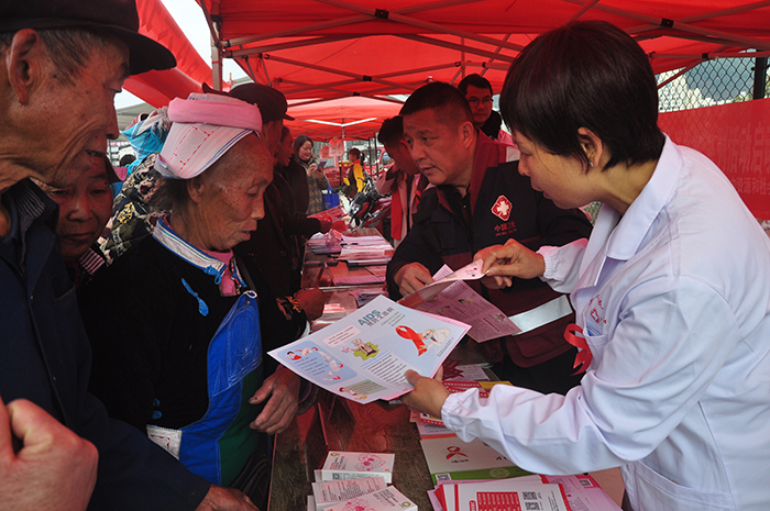 防治工作的良好氛围。11月29日,黄平县利用县城关镇赶集日,县艾防办、县委宣传部 、县教育和科技局、县公安局、县民政局、县人社局、团县委、县总工会、县妇联、县红十字会、文体广电旅游局等多部门联合在三里湾体育馆农贸市场开展活动主题为“凝聚社会力量,合力共抗艾滋”宣传活动。