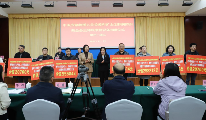 捐赠仪式上,中国应急救援人员关爱和矿山尘肺病防治基金会向贵州省捐赠了价值107万余元的医疗设备和药品,支持贵州尘肺病康复站建设公益项目。