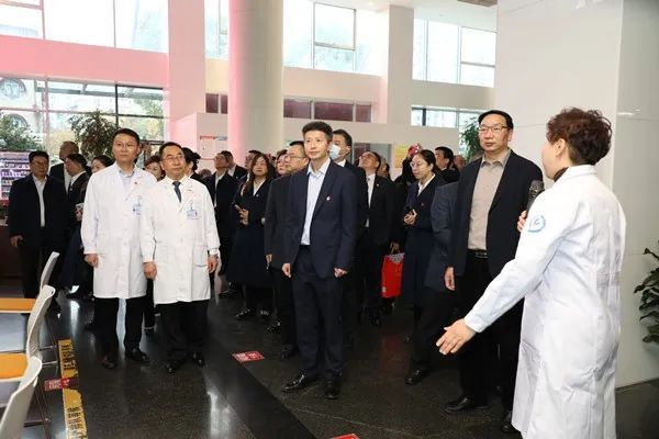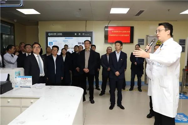座谈会前,周良学书记一行参观了遵义市第一人民医院一站式服务中心、介入/核医学科党支部、检验科党支部等,详细了解了遵义市第一人民医院在党建促学科发展、党建促人才培养、党建促服务改善等方面的具体举措。