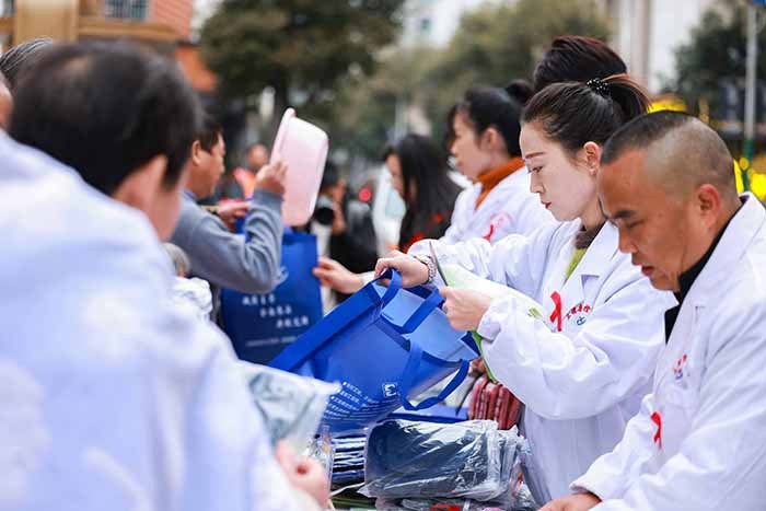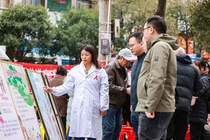 2023年12月1日是第36个世界艾滋病日,贵州省黔东南苗族侗族自治州三穗县疾控中心、县卫健局、县红十字会、县医院、县中医院、社区医院部门联合举办预防艾滋病宣传活动,通过知识讲解、发放材料、物品展示、免费体检等方式,向群众宣传防艾知识,提高群众对艾滋病的危害、传播途径和预防等方面的认知和了解。