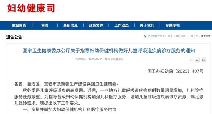 事关儿童呼吸道疾病诊疗,国家卫健委最新通知→