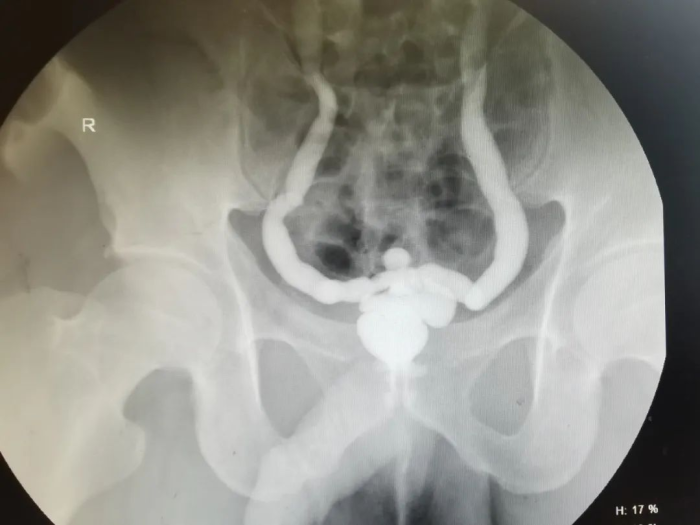 43岁男性患者,因反复尿频2年以上,期间未接受正规诊治,就诊贵州航天医院泌尿外科后,相关检查显示膀胱容量15ml,诊断为泌尿系结核、膀胱挛缩。