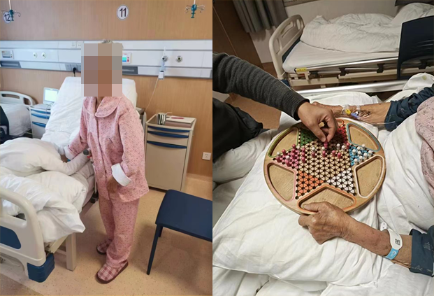 患者自行下地行走,和家属下棋