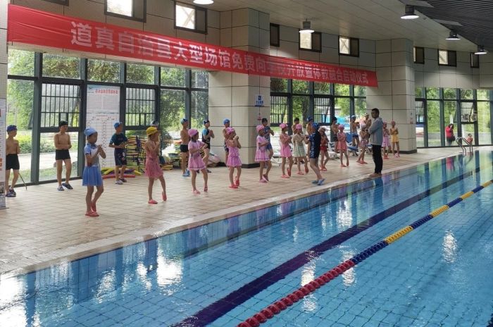 道真县充分发挥教育和体育资源融合发展优势,高质量推动健康学校建设,通过游泳项目进课堂、组织各类游泳活动及比赛,激发学生兴趣,提高参与度,普及游泳运动,促进学生身心健康。同时,将县游泳馆纳入国家大中型免费或低收费补助场馆,每周一至周五下午四点到五点半作为学生游泳课时段开展游泳训练,全县共6间学校近2000名学生完成游泳课程。