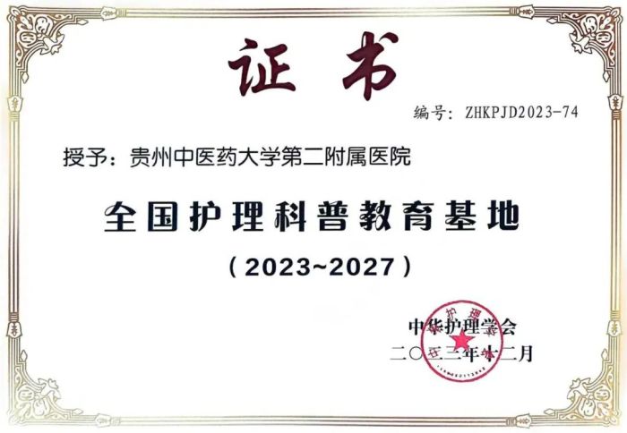 贵州中医药大学第二附属医院获批中华护理学会全国护理科普教育基地