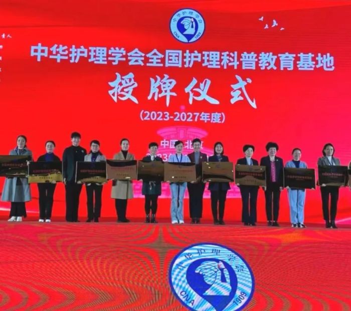 2023年11月30日,中华护理学会全国护理科普教育基地授牌仪式暨2023年科学传播能力提升培训班在北京举行。会上,贵州中医药大学第二附属医院获批中华护理学会全国护理科普教育基地,贵州中医药大学第二附属医院护理部主任肖丽娜作为基地负责人接受授牌。