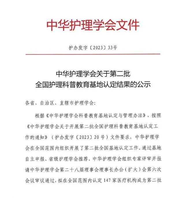 近日,中华护理学会公布了第二批全国护理科普教育基地申报评审结果,贵阳市第一人民医院成功获批“全国护理科普教育基地”!