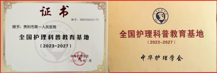 贵阳市第一人民医院获批中华护理学会“全国护理科普教育基地”