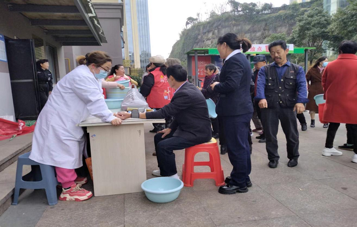 活动现场,工作人员和志愿者通过设置宣传咨询平台、悬挂宣传标语、健康义诊、发放宣传单以及现场讲解等方式,向群众发放《中华人民共和国宪法》《中华人民共和国民法典》《中华人民共和国基本医疗卫生与健康促进法》《中华人民共和国传染病防治法》《中华人民共和国医师法》《中华人民共和国食品安全法》《贵州省人口与计划生育条例》等相关法律法规宣传册及赠送盆、桶、毛巾等宣传小礼品,耐心向群众普及讲解有关法律法规知识、咨询答疑群众的提问,引导市民学法、守法、用法,学会用法治思维解决问题,增强依法维权意识,正确捍卫合法权益;同时,医务工作者还免费向群众提供了健康义诊,测量血压血糖等服务。