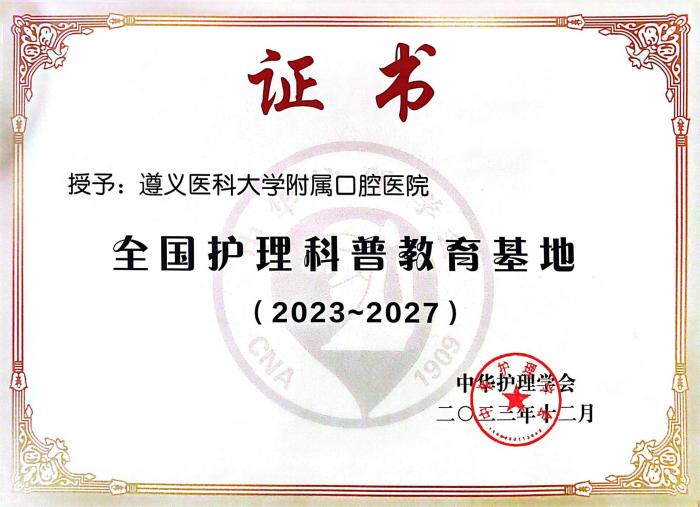 遵义医科大学附属口腔医院获批全国护理科普教育基地