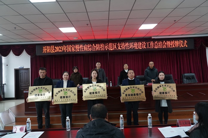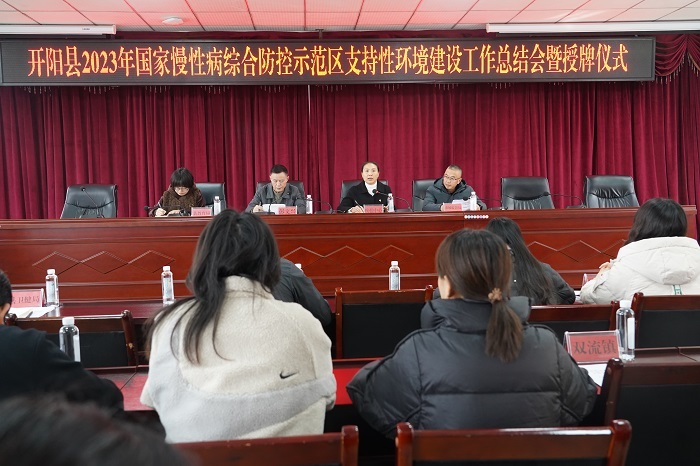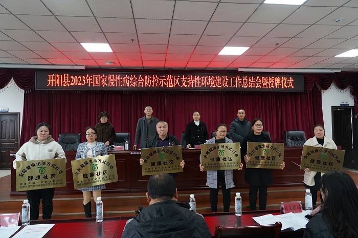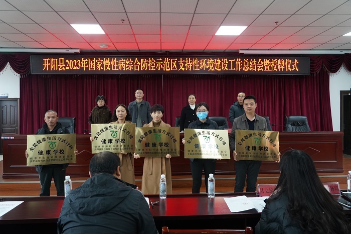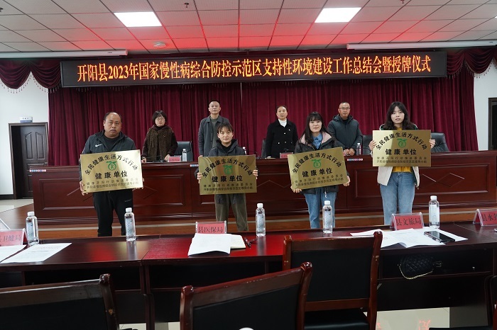 2023年12月8日,在开阳县卫生健康局会议室召开开阳县2023年国家慢性病综合防控示范区支持性环境建设总结会暨授牌仪式,本次会议共计40余人参加。