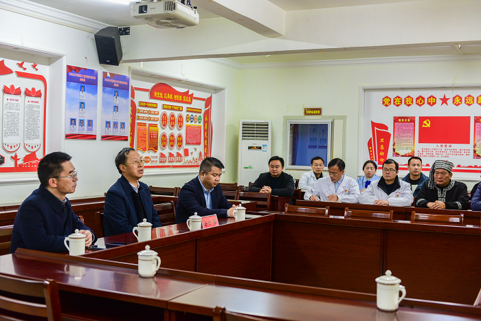 12月12日,省卫生健康委党组成员、副主任,省中医药局党组书记、局长安仕海一行到天柱县中医院调研。县委副书记、县长赵明波,县卫健局党组书记、局长陶相甫及院党政领导班子陪同调研。