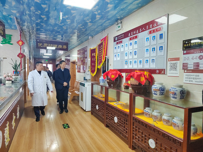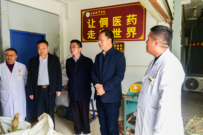 安仕海一行先后到治未病科、皮肤科、外科、康复科、骨伤科、民族医药学科(天柱县侗医研究院)、煎药室、百草园等进行调研,对中医药人才培养、临床应用、特色优势等方面进行了深入的了解。