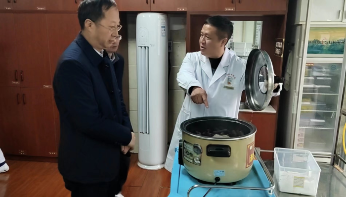 安仕海一行先后到治未病科、皮肤科、外科、康复科、骨伤科、民族医药学科(天柱县侗医研究院)、煎药室、百草园等进行调研,对中医药人才培养、临床应用、特色优势等方面进行了深入的了解。