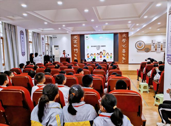 贵州中医药大学第二附属医院作为全省中西医结合龙头医院,历时3年打造了“中医中药 护佑健康”中医药文化传播品牌,通过在贵阳市省府路小学开展中医药健康知识宣讲活动,不断培养学生崇尚中医文化的兴趣,做中华民族优秀文化的传承者,厚植爱国情怀。医院口腔科、眼科专家向小朋友们普及了口腔和眼部的保健知识,帮助孩子们养成健康的生活方式和良好生活习惯,树立做自己健康第一责任人意识。医院专家还利用课余时间为全校师生开展了诊疗服务、现场答疑。
