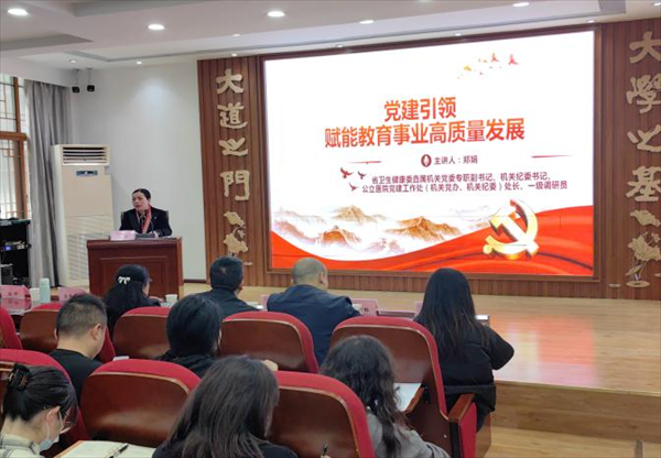 支部活动结束后,受贵阳市省府路小学邀请,省卫生健康委直属机关党委专职副书记、机关纪委书记、公立医院党建工作处(机关党办、机关纪委)处长、一级调研员郑娟以《党建引领赋能教育事业高质量发展》为题,给学校党总支党员、团员等上了一堂生动的党课。