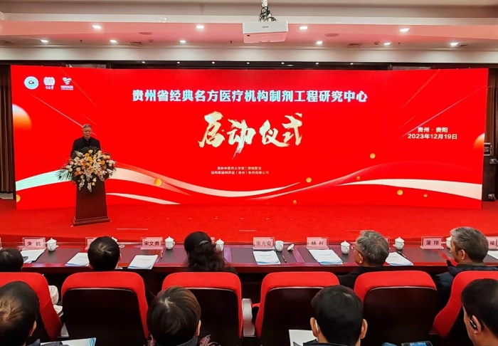 12 月 19 日,贵州省经典名方医疗机构制剂工程研究中心正式挂牌启动。贵州省政协副主席张光奇讲话并宣布中心正式启动,贵州中医药大学党委书记杨柱,省发展和改革委员会二级巡视员、高技术产业处处长李薇参加启动仪式。