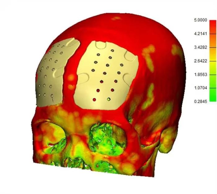 了解患者情况后,向欣团队经过充分讨论,决定使用目前全球最安全的聚醚醚酮(PEEK)材料为她定制修复的颅骨。向欣团队与工程师充分沟通,不断进行精细的调整设计,经过三维重建、3D打印制作出精准吻合骨窗的PEEK材料修补片。