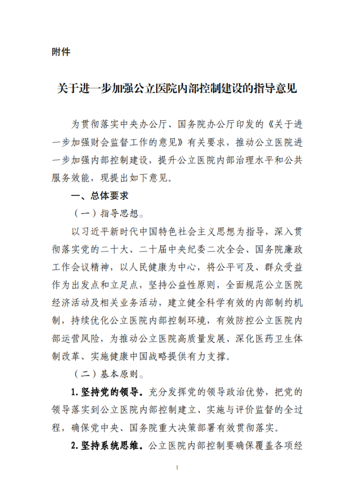 附件:关于进一步加强公立医院内部控制建设的指导意见