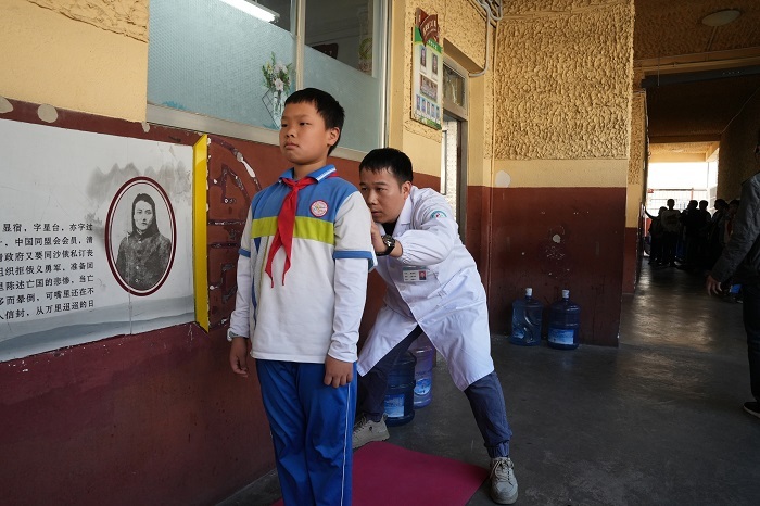随后,康复科医生与专家一起为学生们进行青少年脊柱侧弯筛查,根据不同情况对学生提供针对性的健康指导和建议,提醒他们关注自身健康,及时纠正不良姿势。