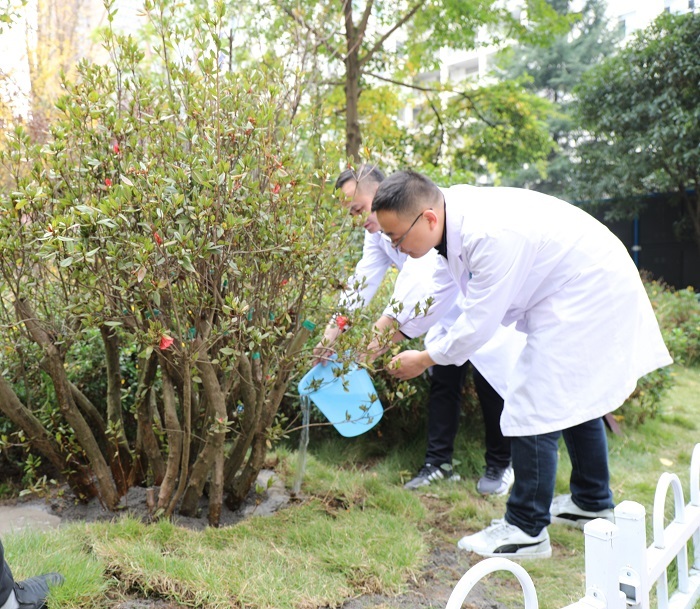 一名从高处坠落导致肝脏挫裂伤并血肿形成的14岁患者经浙江省人民医院毕节医院(以下简称“浙毕医院”)胃肠外科(普通外科一病区)业务主任陈斌、行政主任刘春铭及全科医护人员及时救治,恢复出院时,为感谢陈斌、刘春铭精湛的医术及医护人员的精心照护,患者父亲项先生特意将自家已种植4年的小杜鹃(映山红)移栽到浙毕医院花园中。