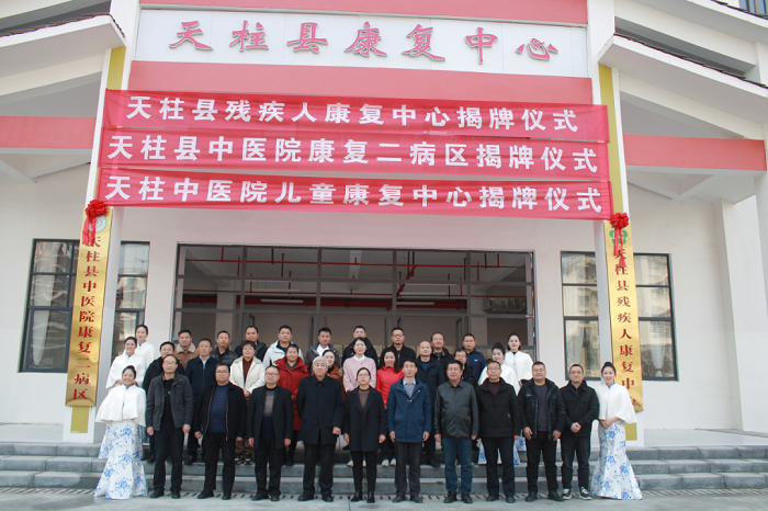 12月28日,天柱县康复中心(天柱县残疾人康复中心、贵州省康复医院专科联盟医院、天柱县中医院康复二病区、天柱县中医院儿童康复中心)揭牌仪式在小冲康复中心门前广场举行。全国名老中医、苗侗医大师龙运光先生,贵州省康复医院党委委员、纪委书记、贵州省残疾人康复协会副会长吴国飘、县残疾人联合会理事长杨承东,县卫生健康局副局长杨泉出席揭牌仪式,并共同为天柱县残疾人康复中心、贵州省康复医院专科联盟医院、天柱县中医院康复二病区、天柱县中医院儿童康复中心揭牌。揭牌仪式由天柱县中医院张平院长主持,院党委书记文安明作基本情况介绍,县残疾人联合会理事长杨承东致辞讲话。天柱县医疗机构相关负责人、各乡镇街道卫生院负责人参加揭牌仪式。