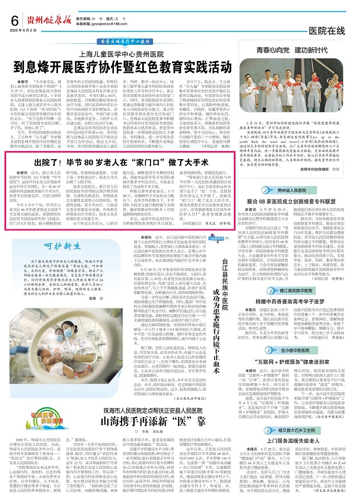 出院了!毕节80岁老人在“家门口”做了大手术(《贵州健康报》