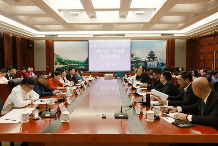 1月2日,新年的第一个工作日,中山一院党委骆腾书记率队到中山大学附属第一医院贵州医院就国家区域医疗中心建设项目进行调研指导,贵州省领导会见了骆腾书记一行。