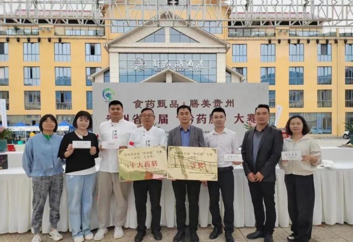 当时黔南州代表队带来四道药膳,在制作过程中依据中药医理进行合理搭配,达成药物、食材与人群差异的有机结合。都匀毛尖茶、铁皮石斛、野生何首乌苗、臭牡丹、冲冲糕、黑毛猪、毛药炖鸡等黔南本地特色中药材与食材在医护人员的巧手下实现了蝶变,一道道造型各异的药食佳肴既有养生滋补之效,又兼具色、香、味、形,能够更好发挥中医药防病治病、保健养生的效果。