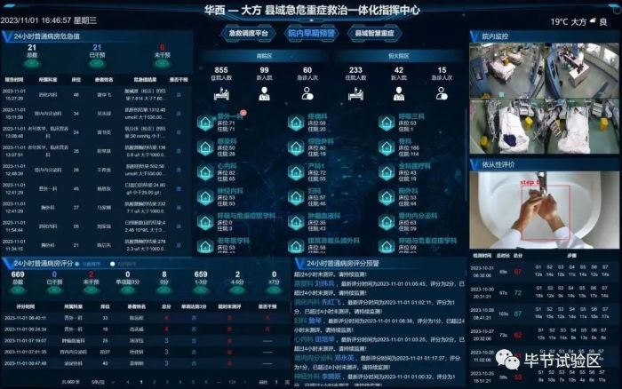 大方县人民医院通过物联网技术,搭建以急诊、ICU为中心的重症预警中心,通过大数据及AI等技术,智能抓取院内患者监护、检查及治疗等信息,并采用国际通用的评分体系,对患者危急值、血管活性药物以及实时的生命体征数据进行抓取、动态评估后得出分值,实现院内患者信息的统一监控及同质化管理,完成重症患者早期预警,打造“没有围墙的ICU”。