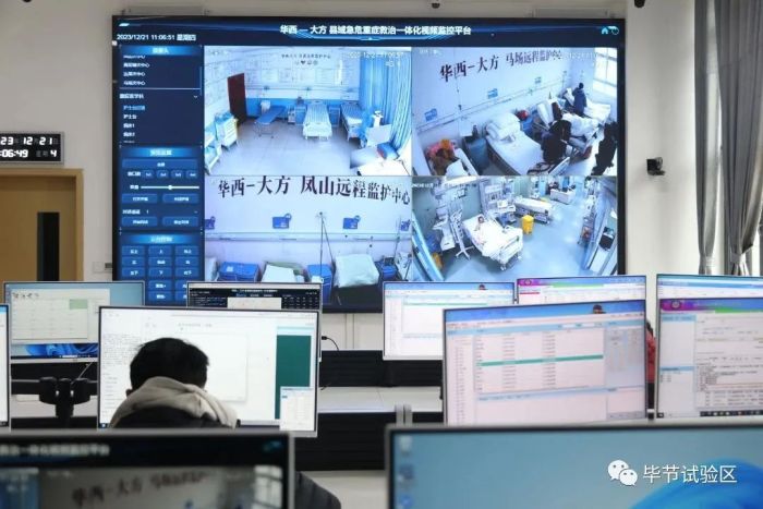大方县人民医院通过5G+信息化,在乡镇卫生院急诊科搭建远程监护病房、移动查房系统,定期及不定期地进行县乡两级医院线上查房、线上会诊等,打造“远程(移动)ICU病房”,从而实现县域重症“一张床”。同时,还通过华西医院构建的“危重症院间预约转诊平台”和大方县“县域急危重症救治一体化指挥中心”信息互通,打通基层急危重症患者向顶级转诊“绿色通道”。