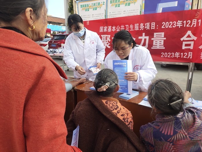 “反诈+义诊”,增强群众反诈意识。以义诊志愿服务活动为契机,组建志愿者在集市人流量聚集地开展“反诈+义诊”宣传活动。用通俗易懂的语言向来往群众重点宣传电信、网络链接和银行卡转账等生活中常见诈骗手段及防诈技巧,现场指导群众下载和使用“国家反诈中心APP”,切实提高了群众的诈骗预防能力。2023年开展志愿服务6次,服务群众1900人次。