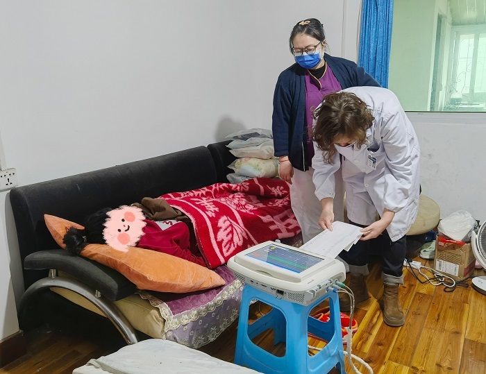 1月5日,妇产科的医护人员带着医疗设备来到了吴女士的家中。在简单询问之后,护士为她进行了测血压、量腹围、产检和胎心监护等一系列检查。整个产检过程非常顺利,吴女士和她的宝宝都很健康。