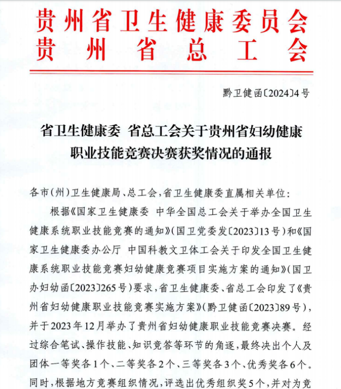 毕节市妇幼保健院在贵州省妇幼健康职业技能竞赛决赛取得优异成绩