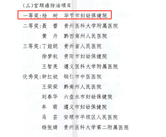 据悉,获得一等奖的杨树将代表贵州省参加全国妇幼健康职业技能竞赛宫颈癌防治组比赛。