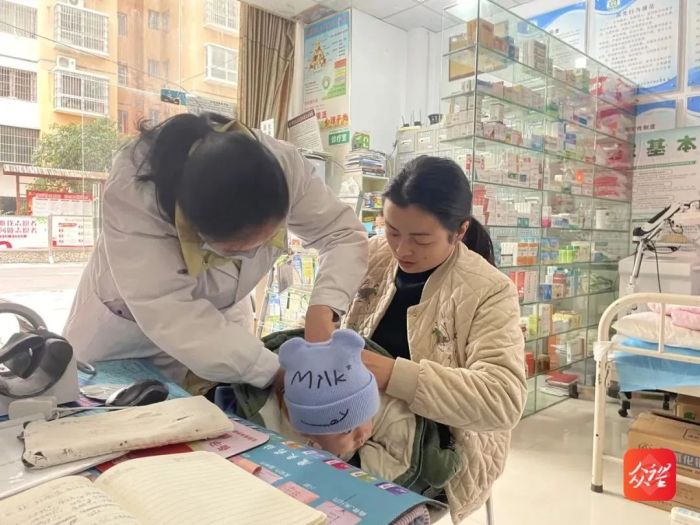 “小朋友哪里不舒服呀?”谢桥街道冲广坪社区卫生服务站医生邹雪梅正在耐心询问患者病情。在这间小小诊室里,血压仪、诊疗台、药品柜等设施配备齐全,一名全科社区医生和两名专职护士坐诊,服务站内,前来问诊的患者接连不断。
