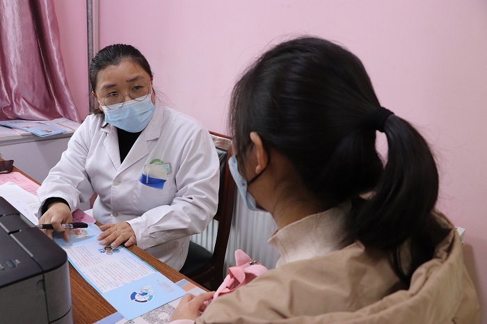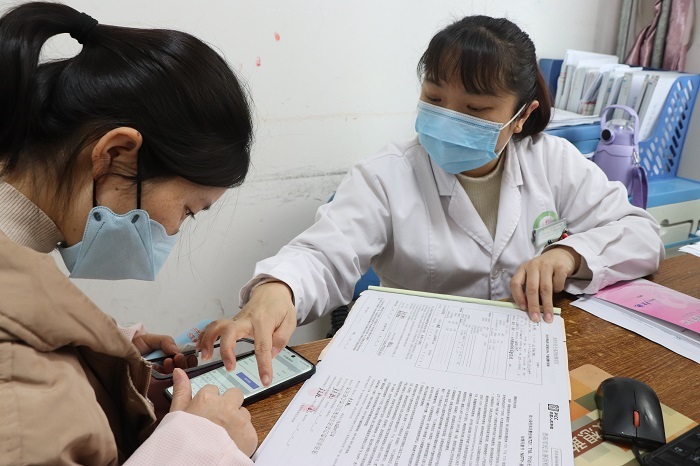 开阳县妇幼保健院孕期保健科主任陈香为孕妈妈宣教民生基因检测项目