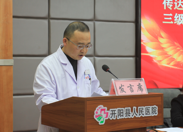 最后,副县长欧波对县人民医院启动三级综合医院创建工作作了重要讲话,他说,“三级综合医院”创建工作是省市对医疗工作关于优化资源配置,提升服务能力的要求,是地方发展和群众需要,是医院实现自身能力提升的重大机遇,也是开阳卫健事业的一件大事,功在当代,利在千秋。开阳县人民医院要以创建“三级综合医院”为契机,抓住机遇、与时俱进,加快提升内涵建设和业务水平,提高医院管理和诊疗能力,扎实开展“三级综合医院”创建工作。