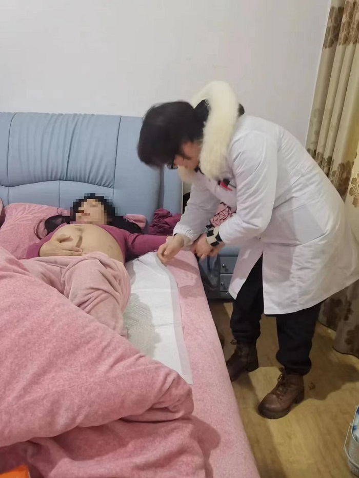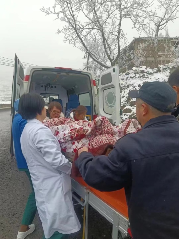 村医接到电话后,立即向亮岩卫生院请求支援。此时,汪世伟家至卫生院的道路因凝冻天气处于管制状态,车辆无法通行。情急之下,亮岩镇卫生院院长李艳华立即组织医疗小队携带急救物品,步行前往汪世伟家中。
