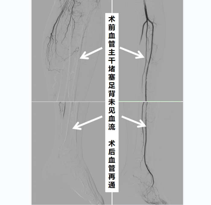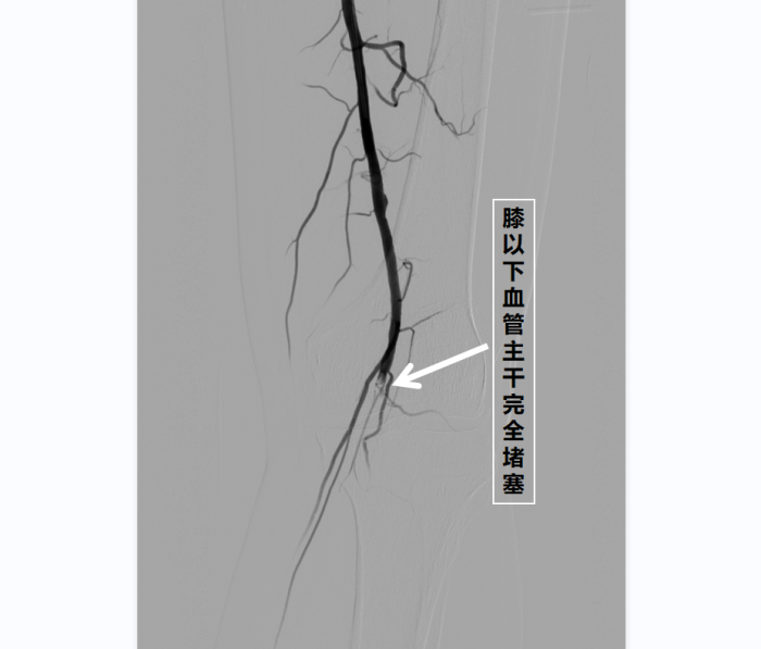 73岁的张先生入院前1天出现左下肢麻木、乏力、疼痛,行走时明显,后来疼痛症状越来越重,左脚逐渐变得苍白、青紫,患者赶紧到当地医院就诊,并且做了下肢动脉造影。