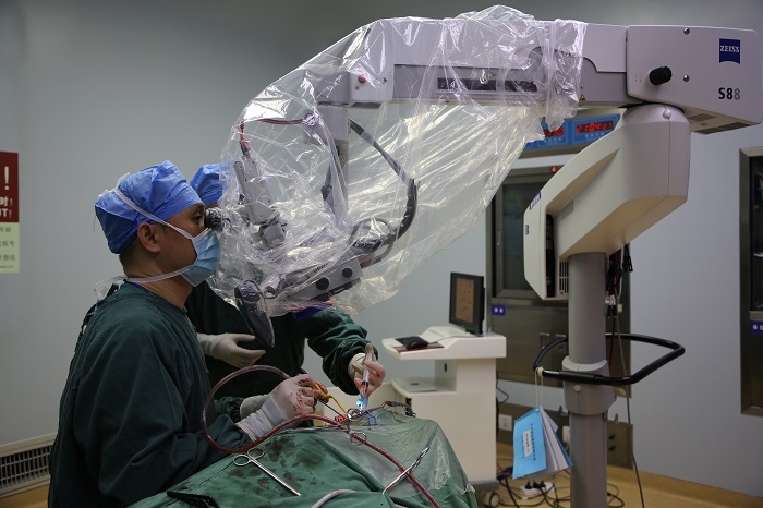 经侧裂小骨窗脑内血肿清除术与以往对高血压脑出血采取的大骨瓣甚至去骨瓣的治疗不同,经侧裂小骨窗脑内血肿清除术采取显微镜下侧裂入路,从正常的脑组织分界进入血肿腔的微创方式,最大限度减少了患者因手术造成的副损伤,患者尽早介入康复治疗后,身体有望在短期内恢复到未发病水平。