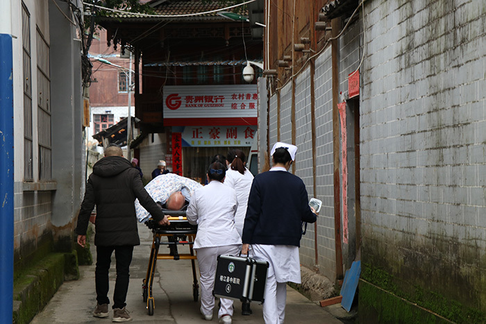 “吴医师,我们村有一名患者需要到医院就医,患者行动不便,家里也没有车,可以请你们到我们村接一下这名患者吗?”榕江县中医院接到古州镇头塘村村医吴倩的电话。