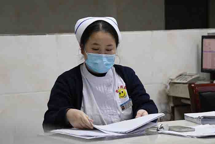 护士在整理患者检查单