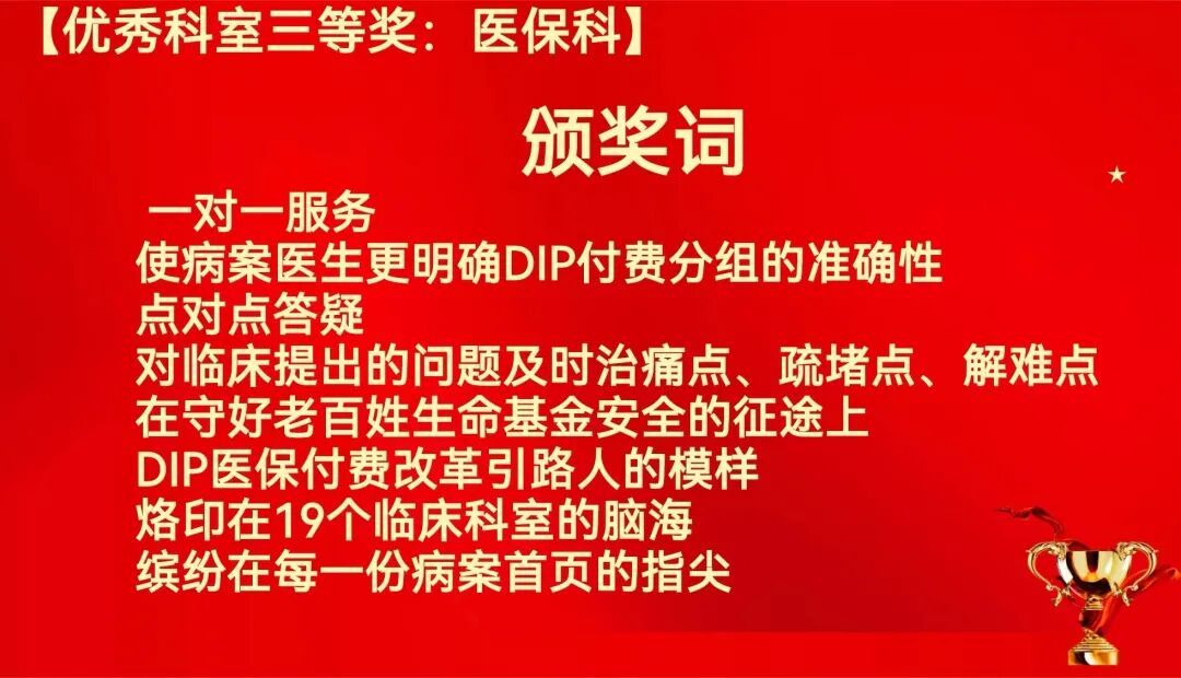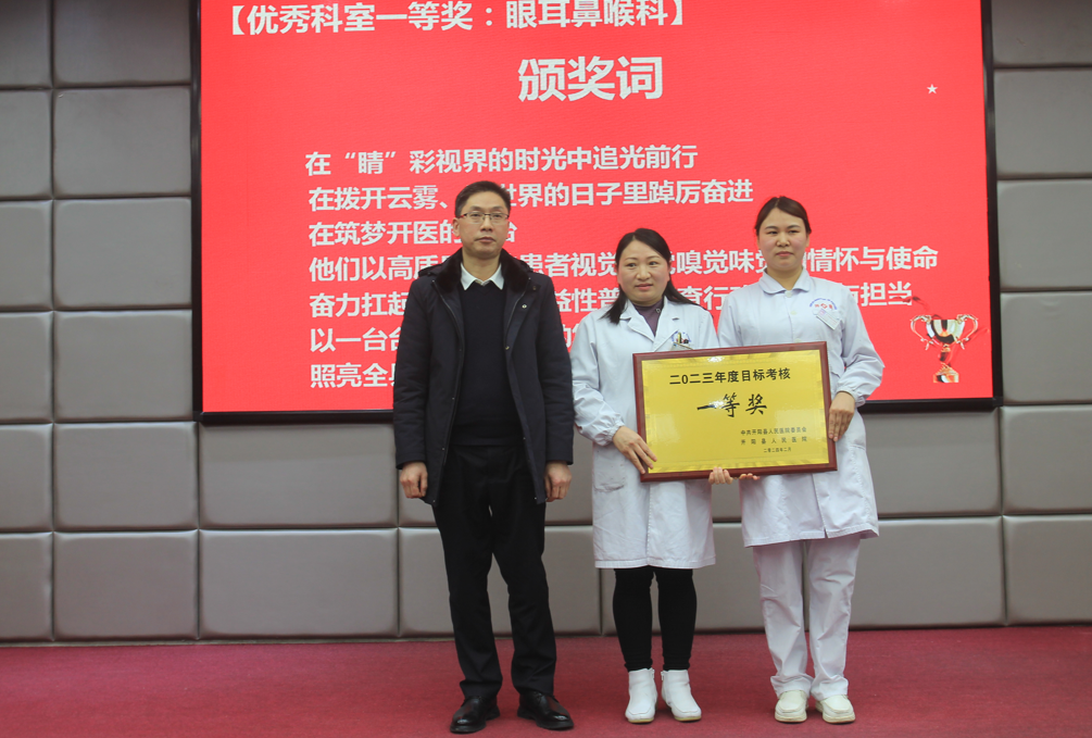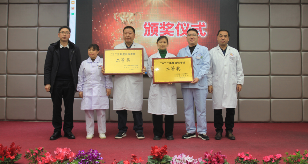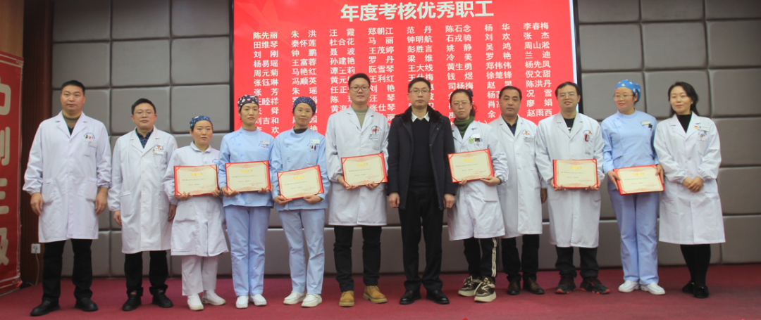 党委委员、纪委书记杨永宣读了《关于表彰2023年度优秀科室、年度考核优秀个人、年度医德考评优秀个人的决定》,勉励受表彰的集体和个人发扬成绩、再接再厉,不断展现新作为、取得新成绩,号召全院广大职工要以他们为榜样,见贤思齐、崇尚先进、争做先锋,为推进医院事业高质量发展作出贡献。参会领导为获得年度考核先进科室、先进个人,医德考评先进个人进行了颁奖。