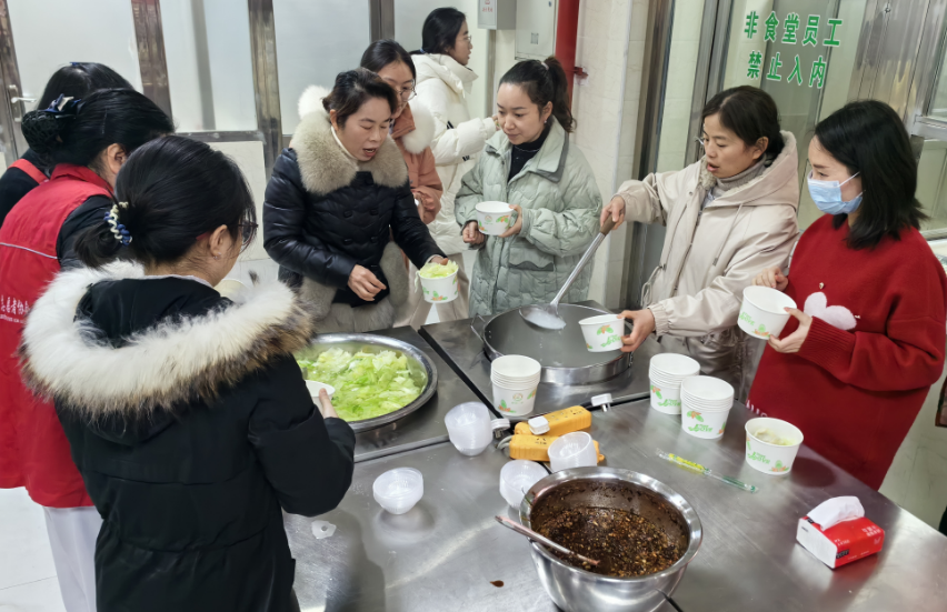 2月8日一大早,各科室的志愿者们,大展厨艺,拌馅、包饺子、下饺子,大家动作娴熟、有条不紊地忙碌着。一个个饱满的饺子纷纷出锅,热气腾腾,香味扑鼻。院领导与职工们齐聚一堂,分享煮饺子的喜悦,在大家的欢声笑语中,整个食堂欢乐祥和、喜气洋洋,洋溢着浓浓的节日氛围。