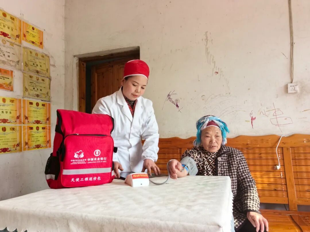 把前来看诊的村民送走,王碧背上“健康背包”,拎起药箱,准备到村里71岁的老人杨光英那里随访。“节前上门时,老人家的血压比较高,还是再去看看放心点。” “构(苗语:爷爷)、巫(苗语:奶奶),我来测个血压。”走进杨光英家洒满阳光的小院,王碧熟络地打着招呼。 打开红色的“健康背包”,取出平板电脑和电子血压计、听诊器,王碧招呼杨光英坐好。 “高压190、低压82……您今早上吃降压药了吗?”王碧一边用平板电脑录入数据一边问。 “起床就去菜园子里忙到现在,还没来得及吃呢。”杨光英回答,不好意思地笑了。 再三叮嘱杨光英一定要按时服药后,王碧收拾好背包,走回卫生室。 “这个‘新装备’(健康背包)帮了我们大忙!”王碧打开背包,向记者一一介绍里面的物品。